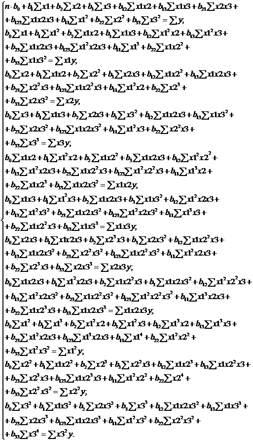трёхфакторного нелинейного полинома регрессии для нахождения передаточной