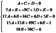 систему алгебраических уравнений для определения неизвестных коэффициентов: