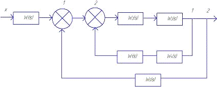 сумматор 2 и звено с передаточной функцией W1(s) в