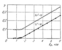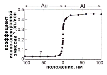 ионно-электронной эмиссии, которая изменяется скачкообразно при переходе