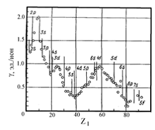 возбуждения электронов ∆Е, как функцию суммы зарядов ядер сталкивающихся