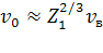 частиц e(Z1+Z2), относительной скорости их vo, расстояния R0 наибольшего