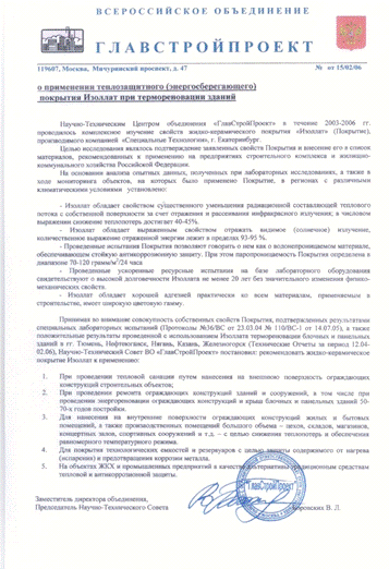 теплоизоляторов. Покрытие "Изоллат" успешно применяется для