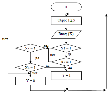 МКС опрашивает двоичные датчики Х1, Х2, Х3 и Х4 и вычисляет логическую