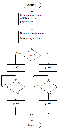 преобразование в цифровую форму, вычисление значений управляющих воздействий Y2