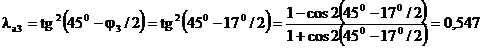 От крайних точек полосы загружения проведены лучи под углами φ º, 45º+φ/2.