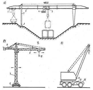 являются ферма и механизмы подъема и перемещения груза. Многие краны имеют