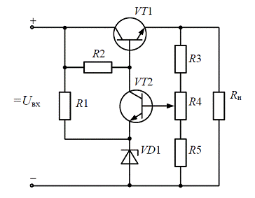 компенсационного стабилизатора напряжения на транзисторах (рис.1).