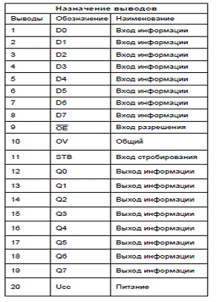 Назначение выводов буферного регистра КМ1821ИР82