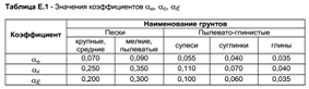 - коэффициенты, принимаемые по таблице Е. 1.
