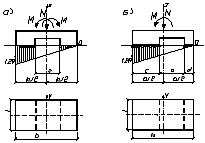 двухстороннем действии момента М при условии недопущения ее отрыва от основания