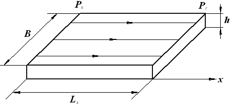 Рис.4.3.1.Схема прямолинейно-параллельного фильтрационного потока в