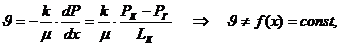 зависимости распределения давления, градиента давления, скорости фильтрации в