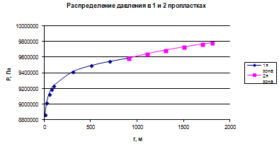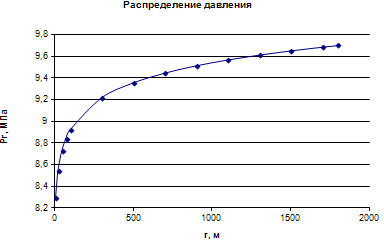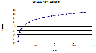 Рис.9.2.2.График распределения давления в пласте