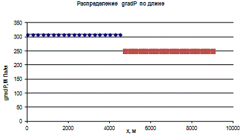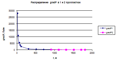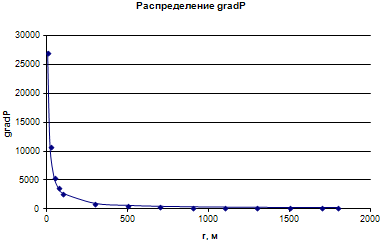 Рис.9.2.3.График распределения градиента давления в пласте