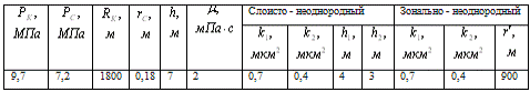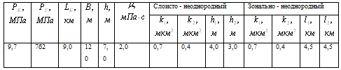 пласта: слоисто-неоднородного и зонально-неоднородного - при следующих исходных
