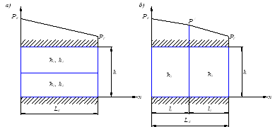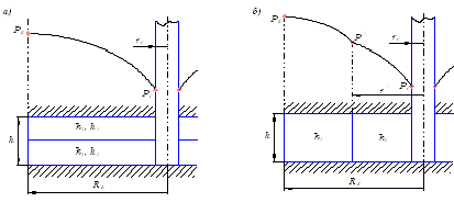 слоисто-неоднородном (а) и зонально-неоднородном (б) пластах