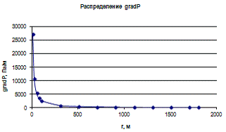 Рис.4.1.3.График распределения градиента давления в пласте