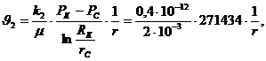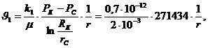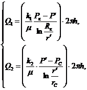 - радиус границы между первой и второй зонами пласта.