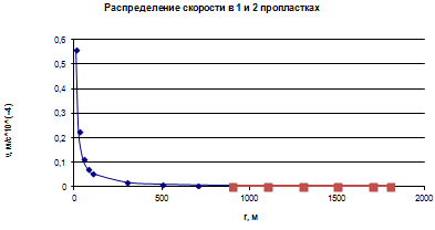 Рис.4.4.7.График распределения скорости фильтрации в пласте