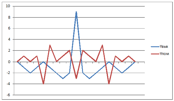 Значения отсчетов принятой смеси сигнала и помехи при приеме по