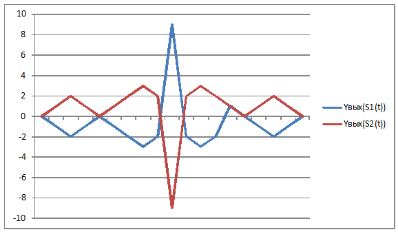 Форма сигналов на выходе согласованного фильтра при передаче символов