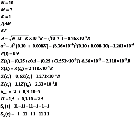 Число разрядов двоичного кода (при передаче сигналов методом ИКМ) n = 8 .