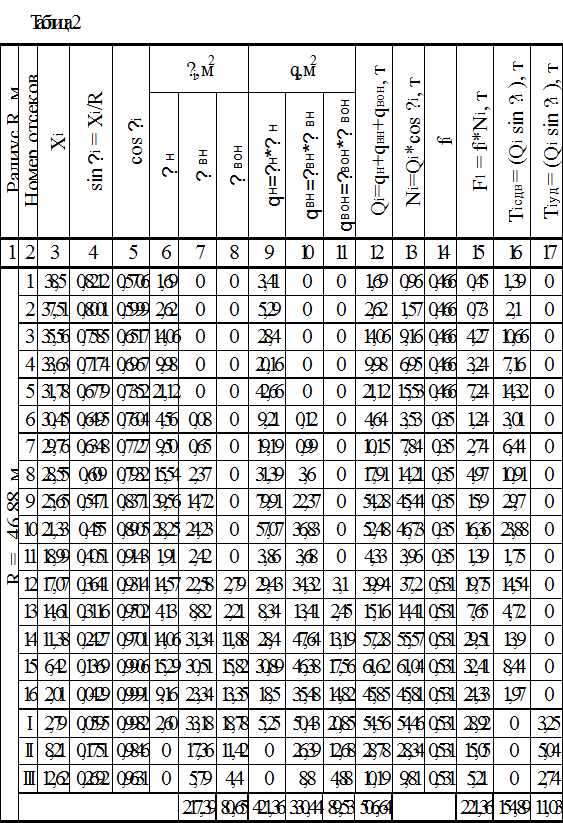 В проекте был выполнен расчет устойчивости насыпи графо - аналитическим