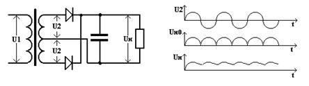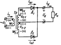 Рис. 4 - Схема однофазного двухполупериодного выпрямителя с