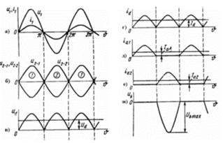 Рис. 5 - Временные диаграммы однофазного выпрямителя с нулевым