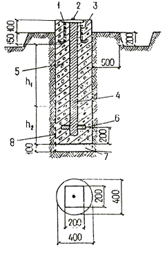 50-70 мм; 5 - бетон классов В7,5 - В12,5; 6 - якорь; 7 - песок; 8 - два слоя