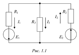 токов ветвей в любом узле электрической цепи равна нулю ∑Ik = 0.