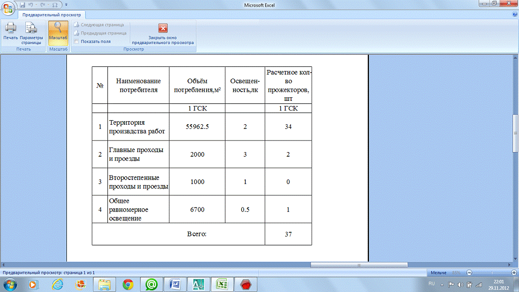 . Обоснование потребности строительства в освещении