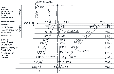 заложения (ФМЗ) и свайные; произведены расчёты фундаментов по второй группе
