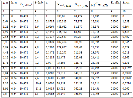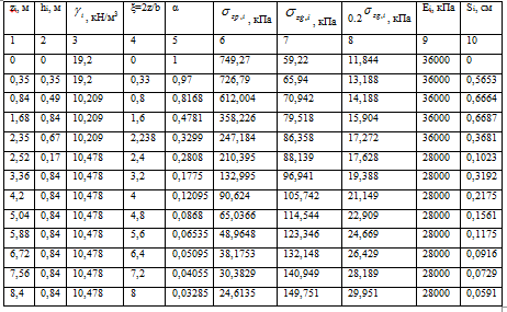 заложения ростверка d = - 1,5 м, осадка фундамента S=4,92 см;
