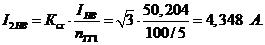Вторичные токи в плечах защиты, которые соответствуют номинальной