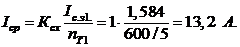 срабатывания отсечки определяется отстройкой от максимального первичного тока