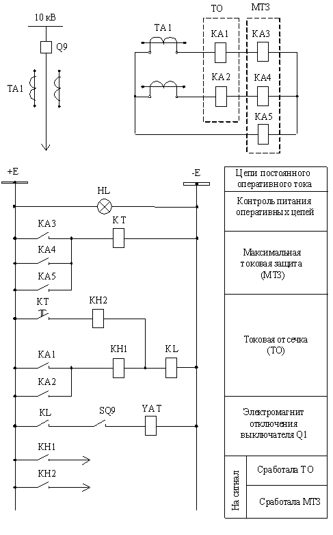 Защита от перегрузки выполняется с помощью МТЗ, включённой на ток одной