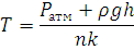 давление можно рассчитать по формуле: P1 = nkT (1).