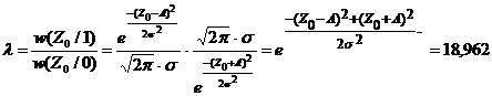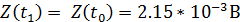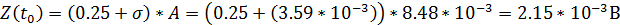 на входе решающей схемы приёмника при однократном отсчете Z(t0) =2,059 мВ.