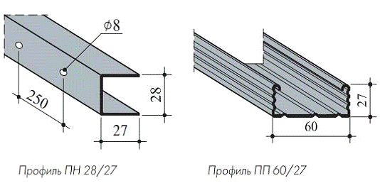 профиль (ПП 60/27) имеет С-образную форму и служит для формирования каркаса