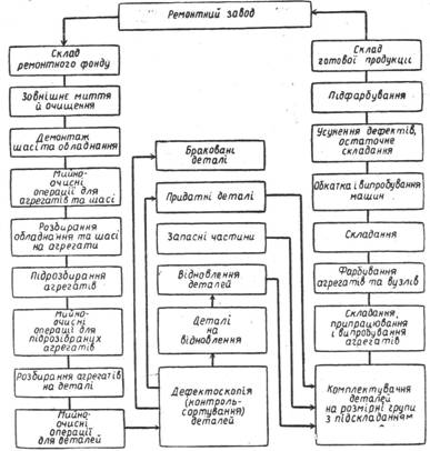 Схема технологічного процесу ремонту машин показана на