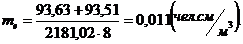 me=(Smp.p+Smм.р)/(8×Vб.р.)=(1024,65+133,96)/(8×606,91)=0,24 (чел.см/мі).