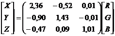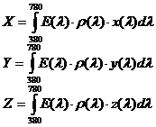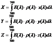 колориметрической системе XYZ и
