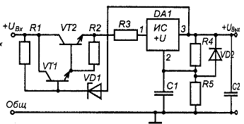 стабилизатора в результате разряда С1 при резком снятии входного напряжения или
