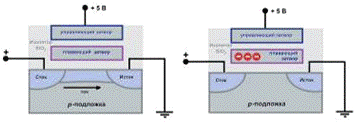 p-каналами. Один и тот же потенциал открывает транзистор с n-каналом и закрывает