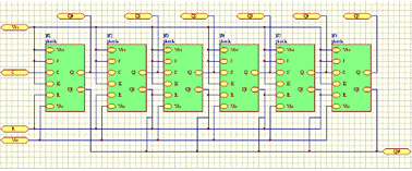 Рис.25. Схема регистра сдвига, построенная в программе Protel.