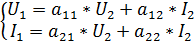 - напряжения и токи на входе и выходе четырехполюсника (рисунок