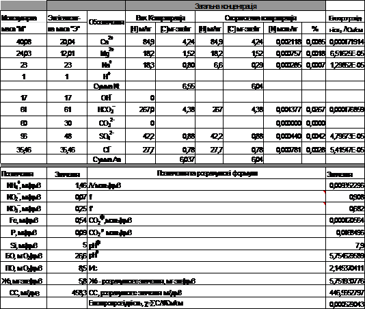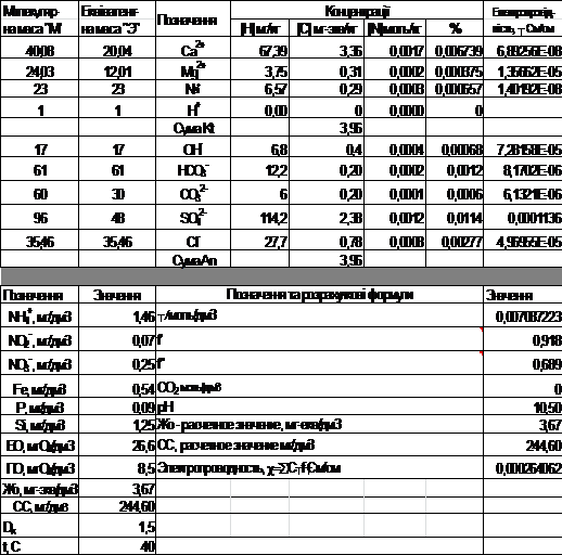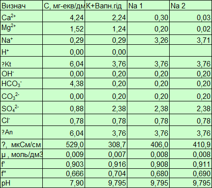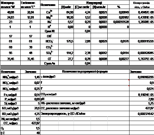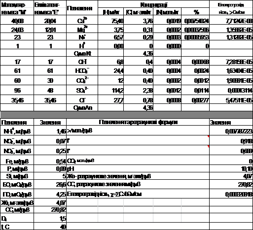 Вихідною є вода р.Стирь з наступним хімічним складом: