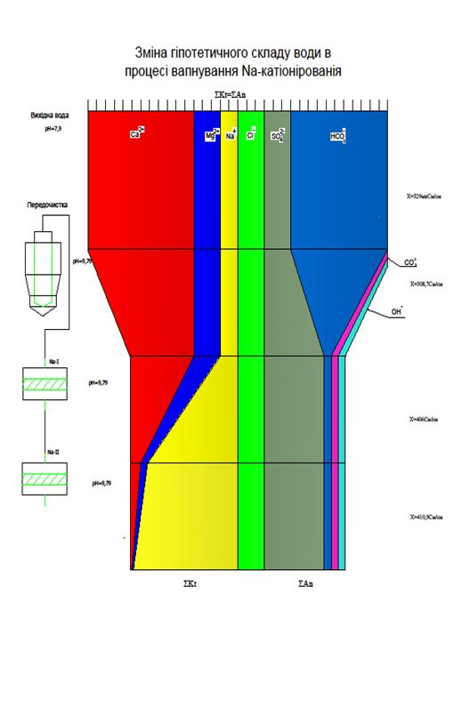 - Н - катіонітовий фільтр, 2- Nа - катіонітовий фільтр, 3 -